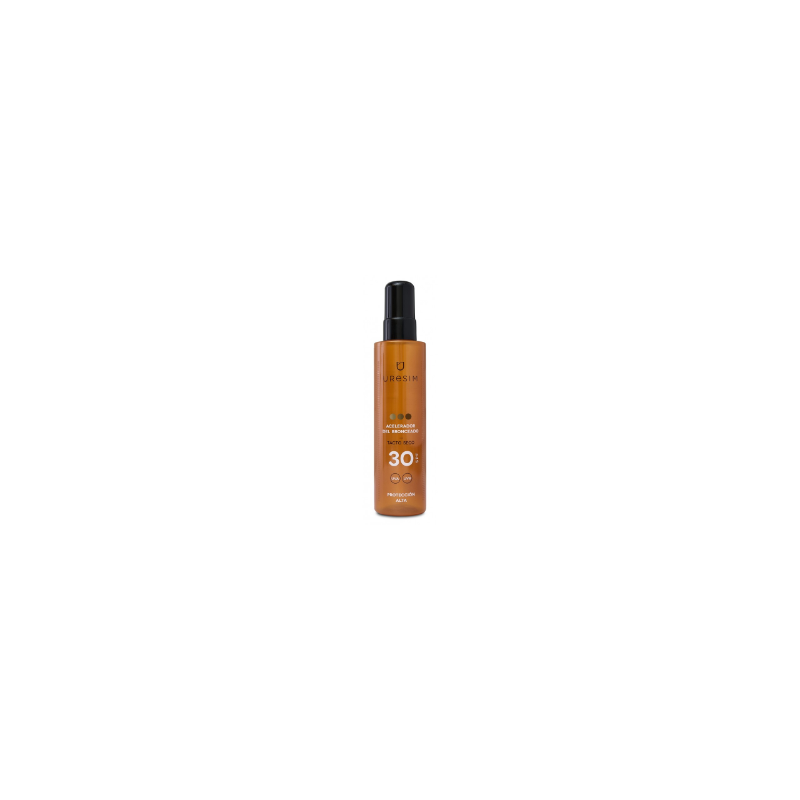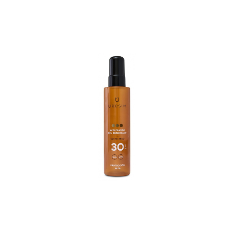 Aceite de tacto seco, con alta protección solar SPF 30, de muy fácil aplicación y resistente al agua, para obtener un bronceado seguro, rápido y natural. Evita el eritema solar mientras que se acelera la producción de melanina endógena ante una exposición solar.